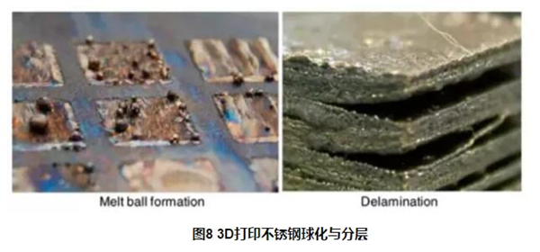 其他變形,比如膨脹或者球化,也可能出現在金屬3D打印過程中。膨脹發生于熔化的金屬超出了粉末的高度。類似地,球化為金屬凝固成球形而不是平層。這和熔池的表面張力有關,它可以通過控制熔池的長度-直徑比小于1-2來減弱。